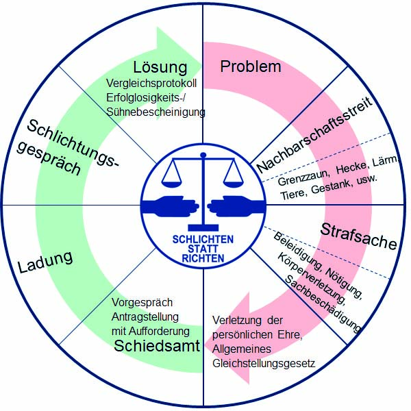 Der erste Kontakt mit der Schiedsperson findet i. d. R.